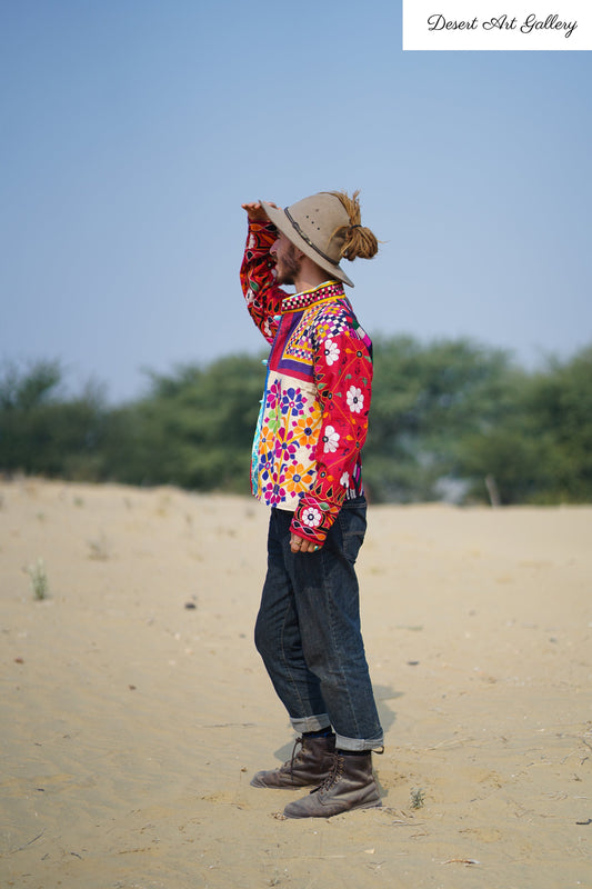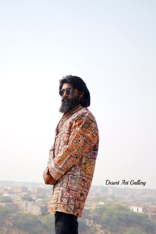 Each jacket is carefully handcrafted using re-purposed, vintage materials and time-honored methods, resulting in truly wearable works of art that tell a story of the desert's timeless allure.