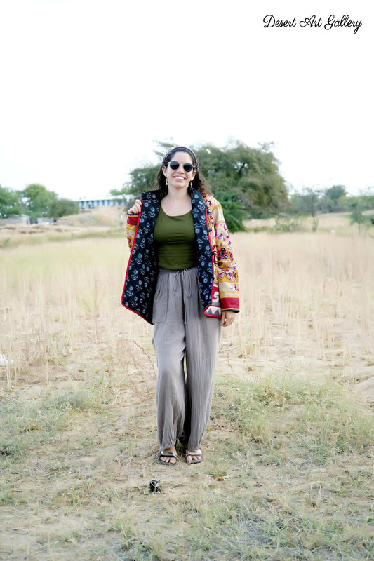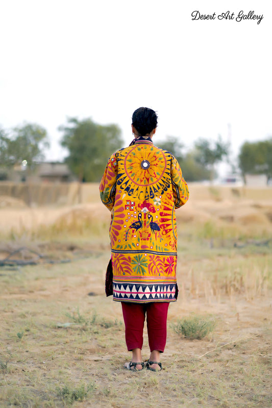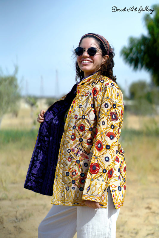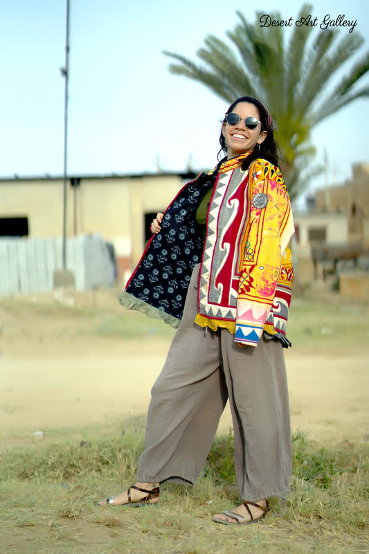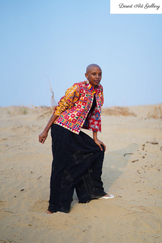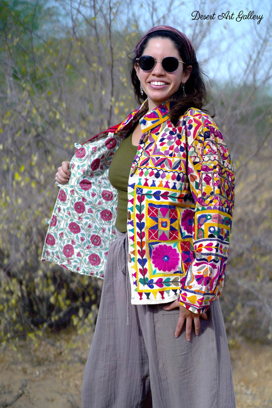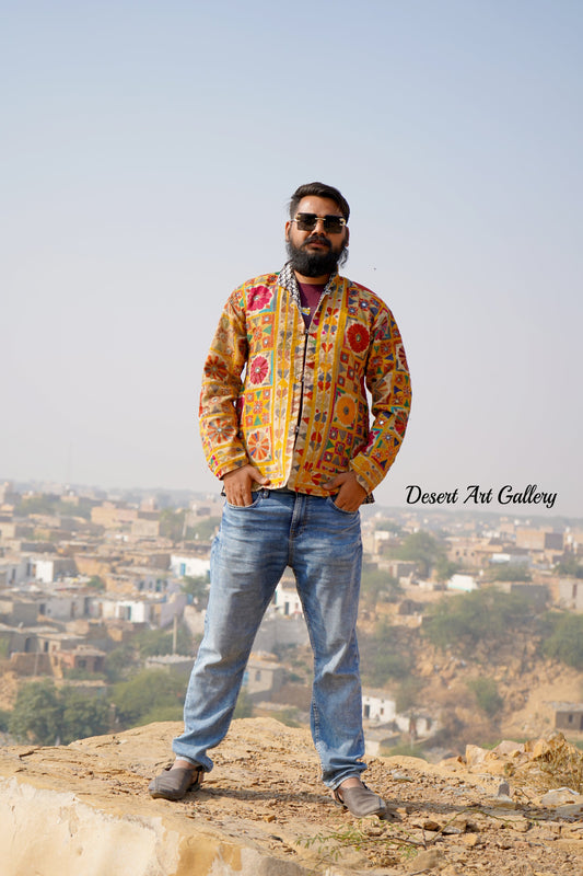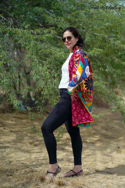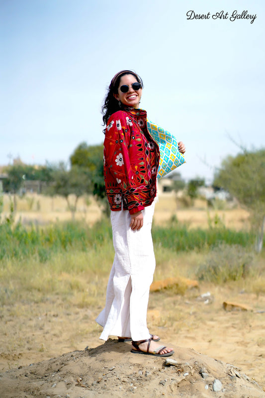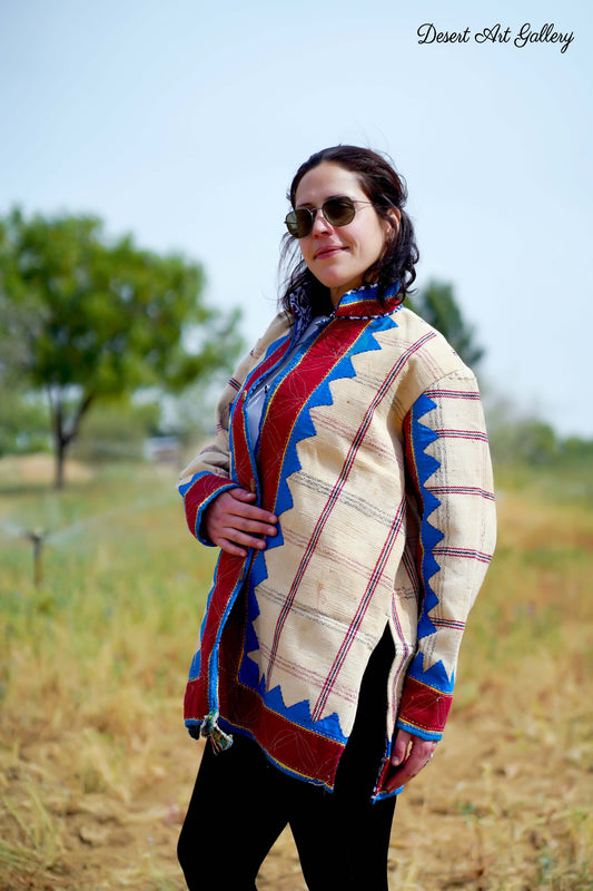 Vintage Rabari fabrics we sourced from the villages of the Banjara tribes in the Kutch region of Gujarat are repurposed into warm, practical jackets. Lovingly hand-embroidered, each of these tells a story of its own.
