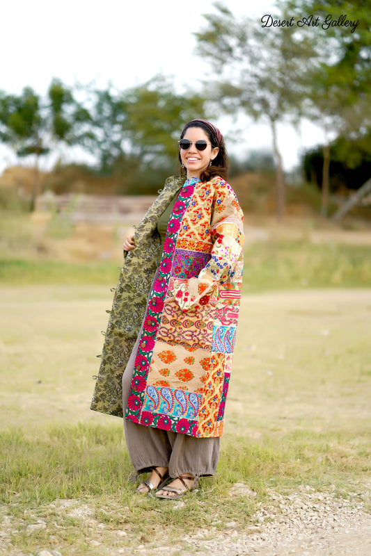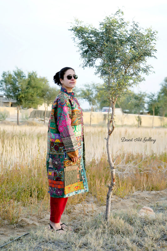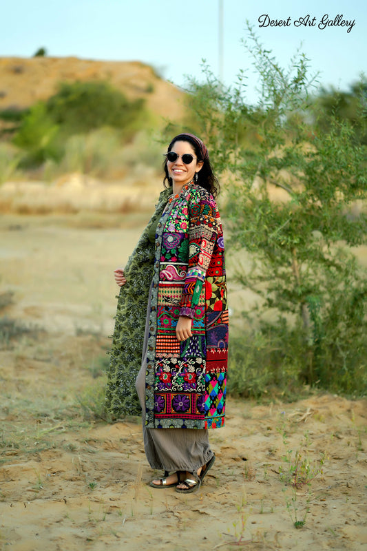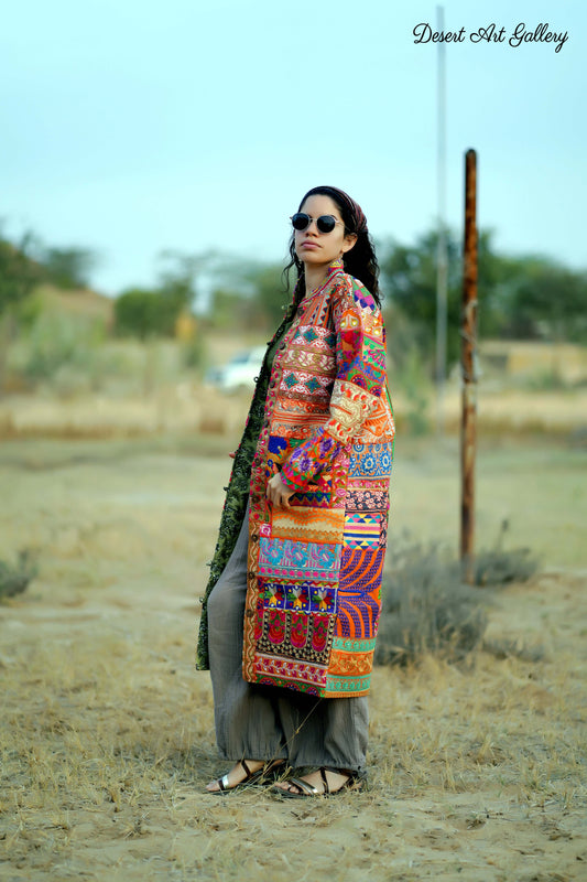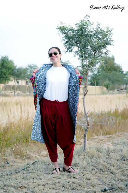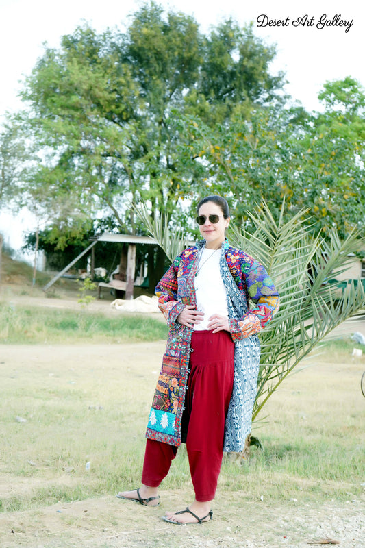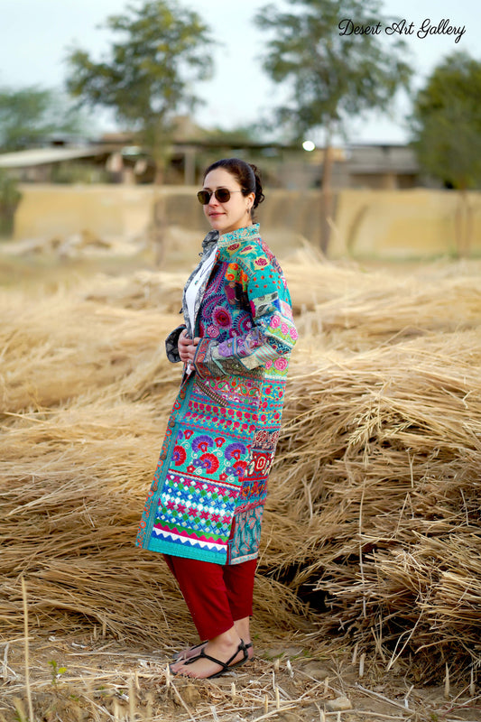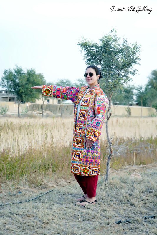 These one of a kind jackets are handmade by people of Rajasthan of re-purposed fabrics. They feature intricate and stunning hand and machine embroidered unique designs.