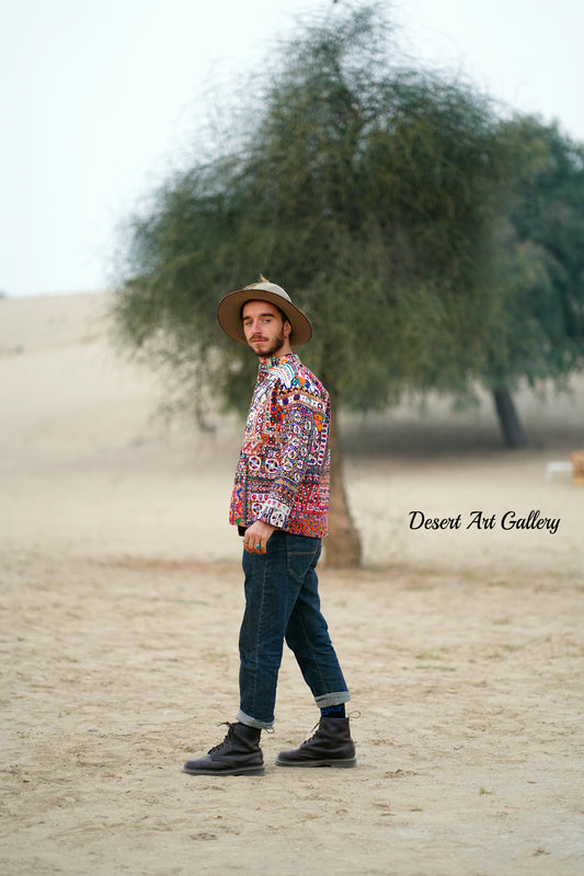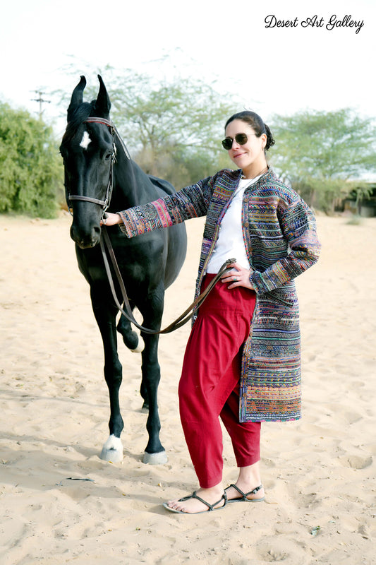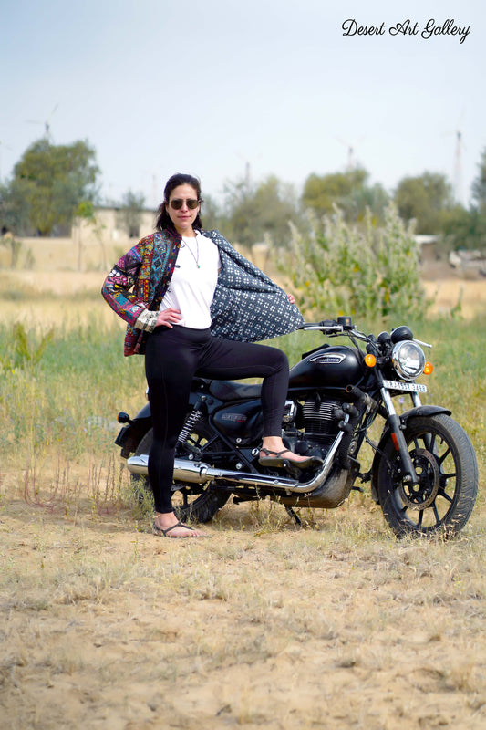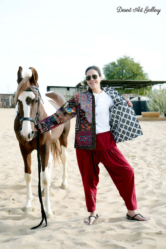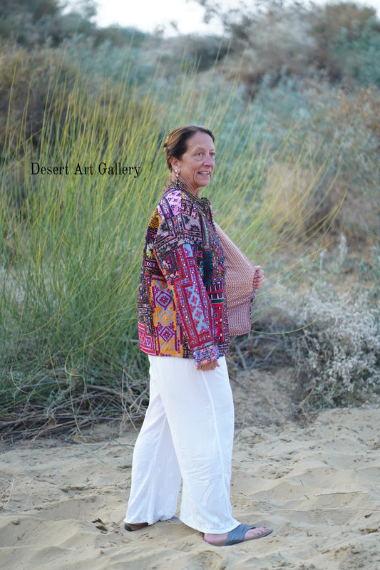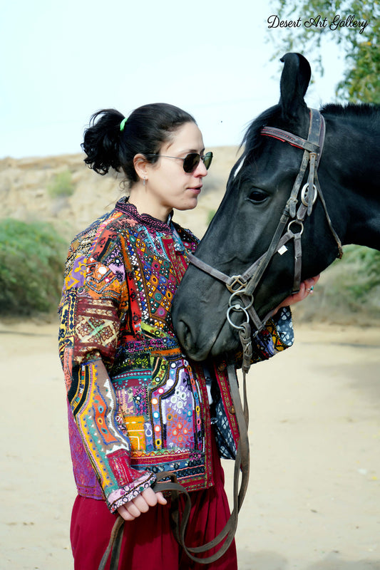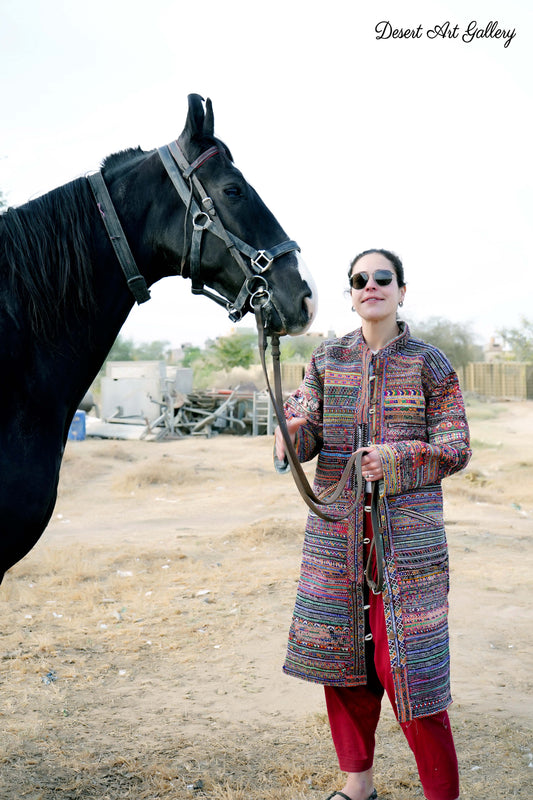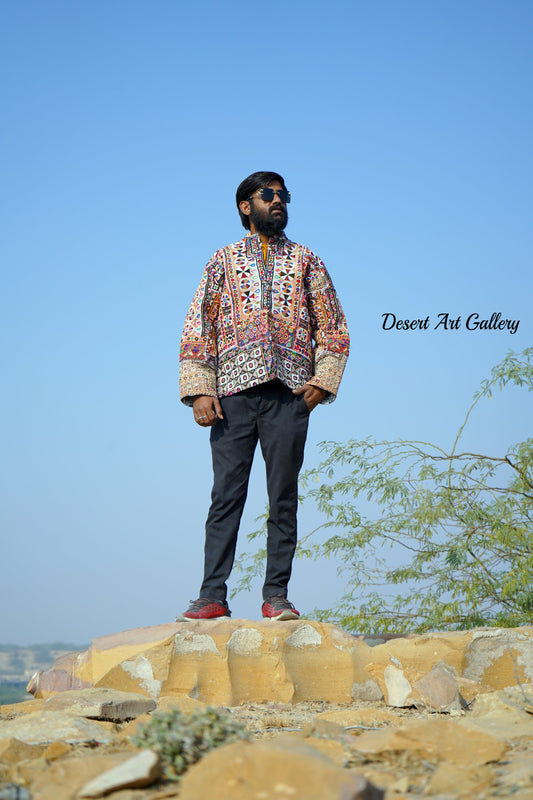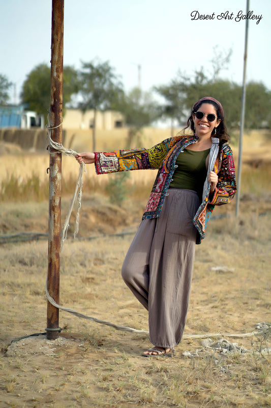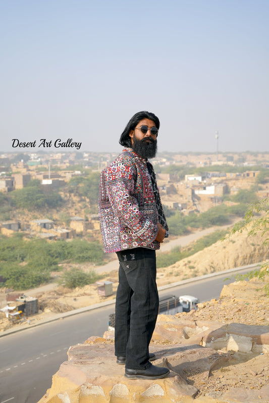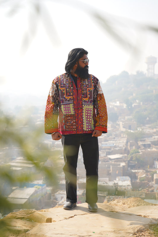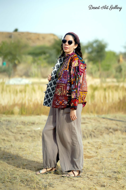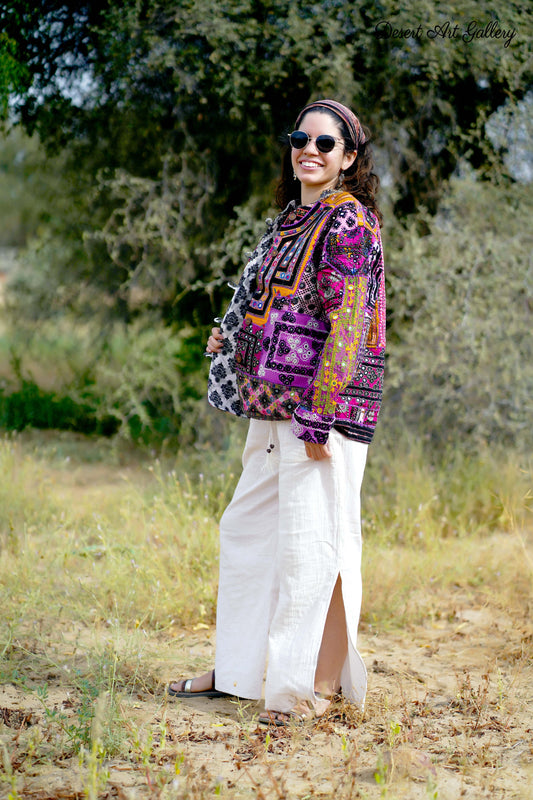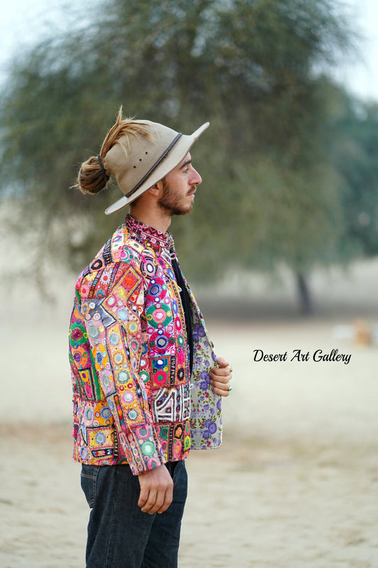 These one of a kind jackets are handmade by the nomadic Banjara people of Rajasthan of re-purposed fabrics. They feature intricate and stunning hand embroidered tribal designs.